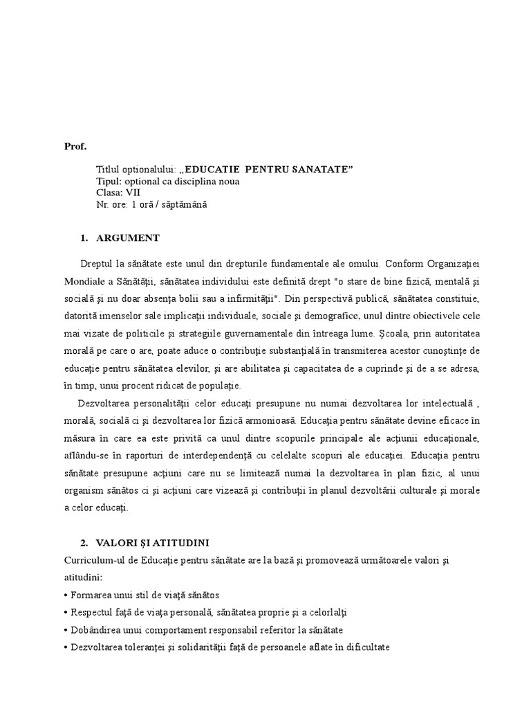 Optional Educatie Pentru Sanatate Doc